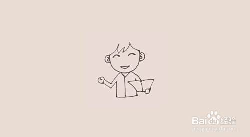 画出额前头发,画出微笑的眼睛和嘴巴。