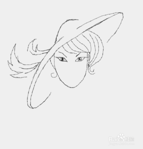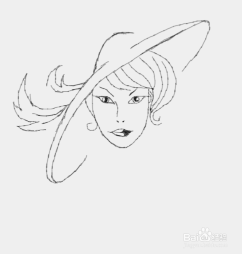 在帽子和头发的基础上再画出美女的面部,如图所示: