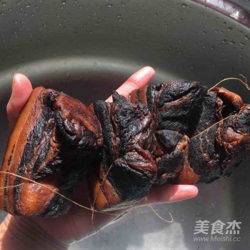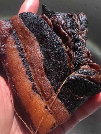 6腌制完把肉给拿出来,拿掉粘在肉上的花椒大料,用绳子把肉给绑起来,放在阴凉通风的地方晾晒7天左右,软硬根据自己的喜好!一般我都晾晒到开始滴油后两天就收!冷冻储存即可!炒菜、蒸、涮、炖、煲仔饭等都可以!