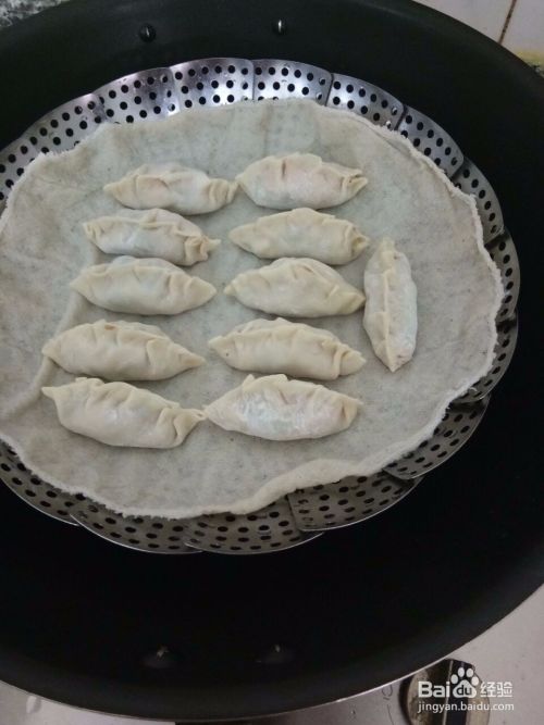 将饺子整齐的放在蒸纱上(饺子与饺子直接要留一些空隙,避免蒸好后饺子粘在一起)