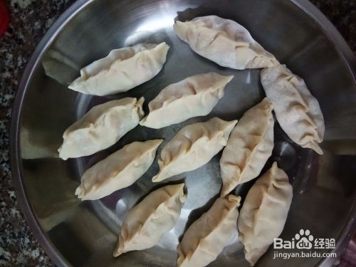 拿出一块饺子皮,放入适量的馅,然后捏合,不要让饺子馅露出了即可(我的就简单的捏了下角),然后将饺子放入碟子中
