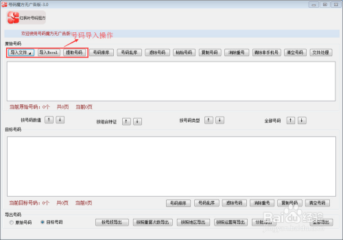 下载红枫叶号码魔方软件并打开,导入号码。导入好吗有三种操作的方式: