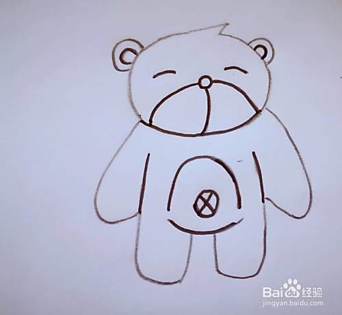 第二步,用铅笔画出小熊的轮廓,如图所示。