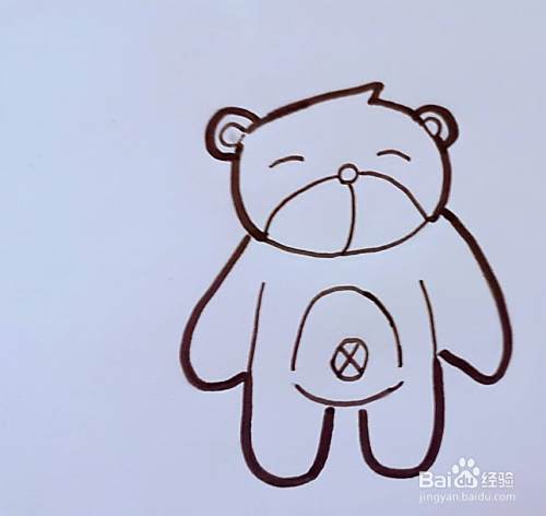 第五步,最后用马克笔涂上喜欢的颜色,小熊画好了。