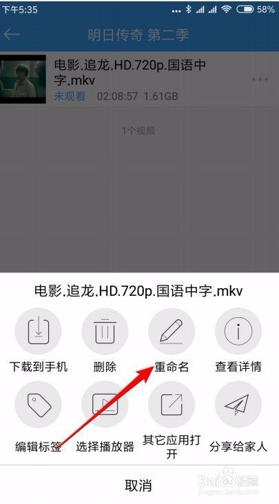 这时就会弹出一个更多菜单,点击菜单中的“重命名”图标。