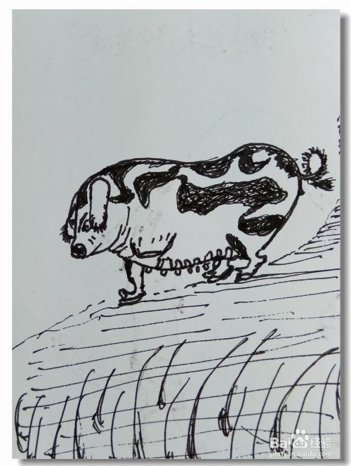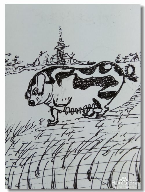 将母猪身上的斑点全部画完整,再用线条画出一些背景。