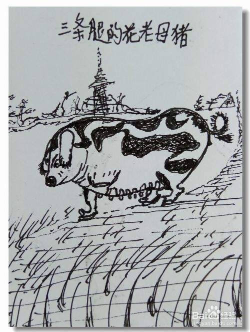 再画出一些背景,让画面更加丰富一些,趣味画“三条腿的母猪”就画好了。