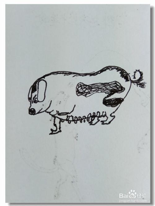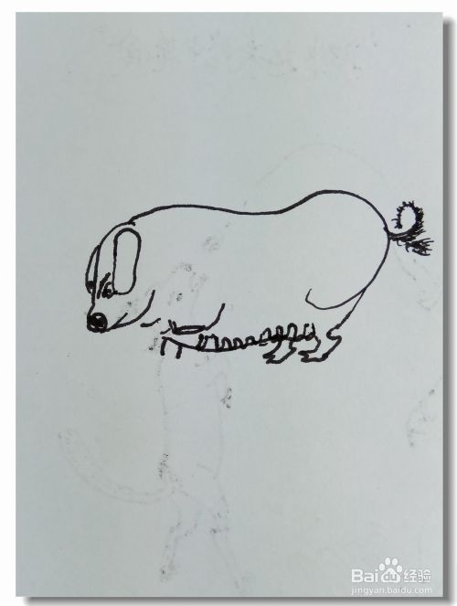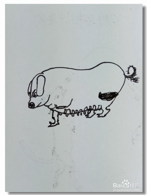 在白纸上用曲线画出母猪的身体轮廓,并画出眼睛,嘴巴和耳朵。
