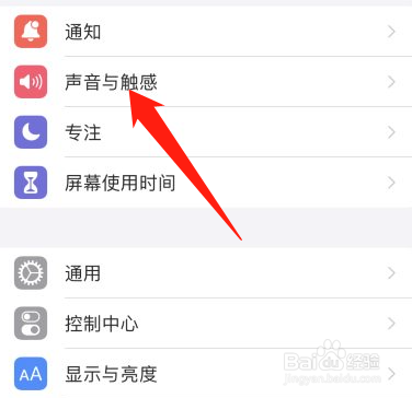 打开手机设置,进入设置页面,选择声音与触感的选项进入。