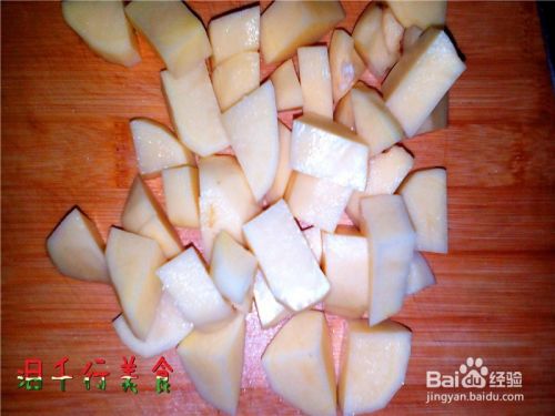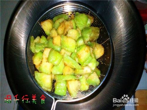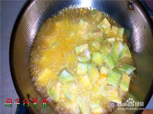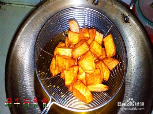 油温在八成热的时候下入土豆块炸至金黄捞出控油