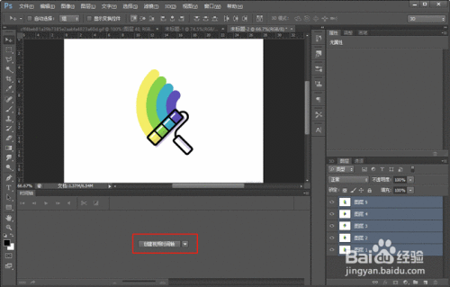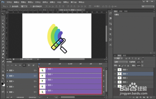 点击创建后,文档内的所有图层就会添加到时间轴内,但是所有图片都在同一时间开始同一时间结束,并没有达到我们想要的GIF效果