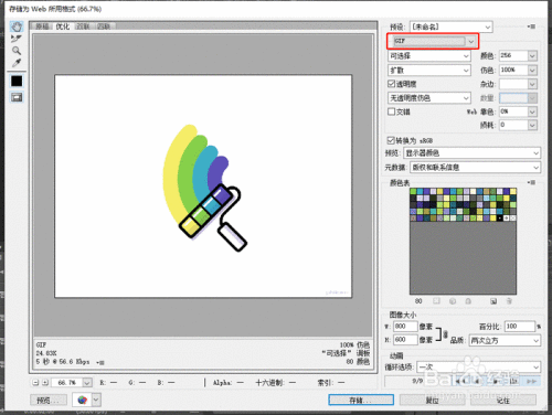 然后在右侧上方选择保存格式为GIF,点击【存储】选择保存位置后保存即可