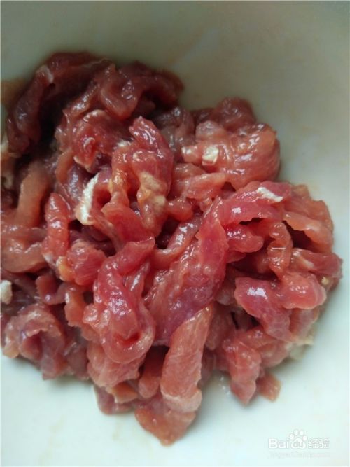 把瘦肉切成细丝,调入适量的蚝油、盐、料酒和生粉,抓匀。