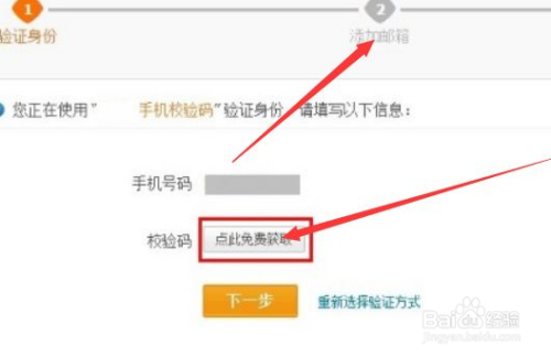 选择手机校验码,输入你的手机号点击免费获取校验码输入,输入要添加的邮箱即可完成。