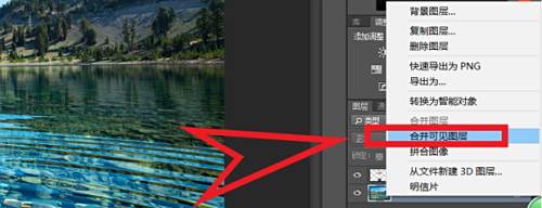 然后再用右键单击图层,在弹出的窗口上选择【合并可见图层】就可以了。