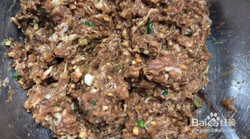 搅拌肉馅的时候最好以摔的方式搅拌。(使肉馅起胶)