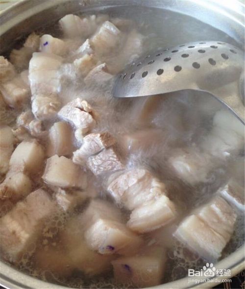 倒入清水中煮沸,焯透血沫,煮至四五分熟捞出沥干备用