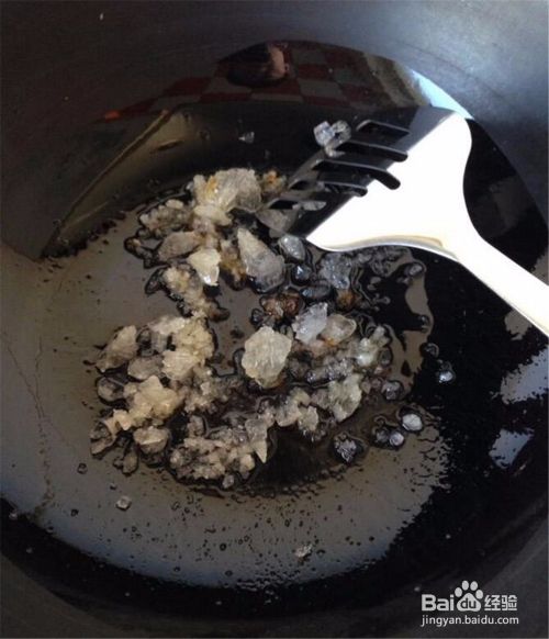 在锅中倒入适量食用油,放入冰糖炒糖色,待冰糖全部融化,看到糖色就可以了