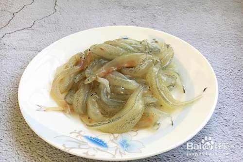 主要食材面条鱼。面条鱼发红色的是公的,发白色的是母的,母的有籽,比较好吃。面条鱼的清洗方法很简单,准备一小盆清水,把鱼倒进去,然后用手轻轻搅拌让脏东西沉淀,接着用笊篱把小鱼捞起,照这个方法冲洗三、四次,然后沥干水分。