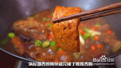 加上青红辣椒圈和蒜片,满屋飘香的炖鱼就完成了。