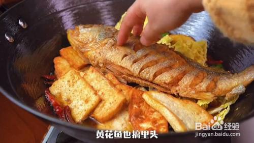 加入一罐啤酒,适量白菜,煎好的豆腐,黄花鱼放里头。