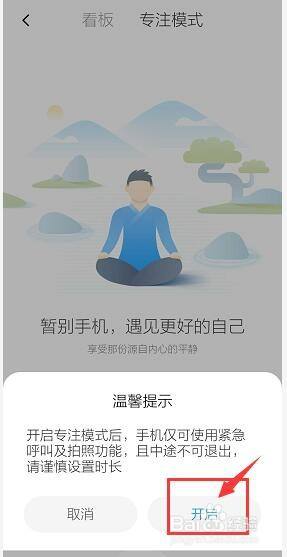 根据提示,点击【开启】确认开启即可开启专注模式。