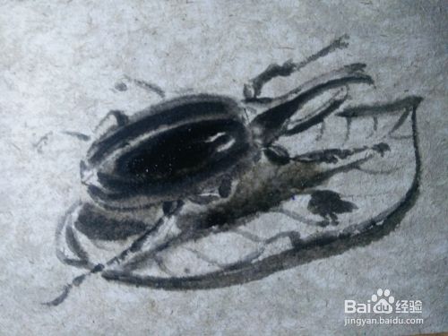 第二步接着用淡墨勾画出甲虫的腿的形状。
