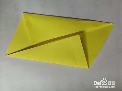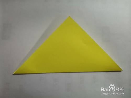 再将三角形翻开,对着中将的线,把下面的边角对折。