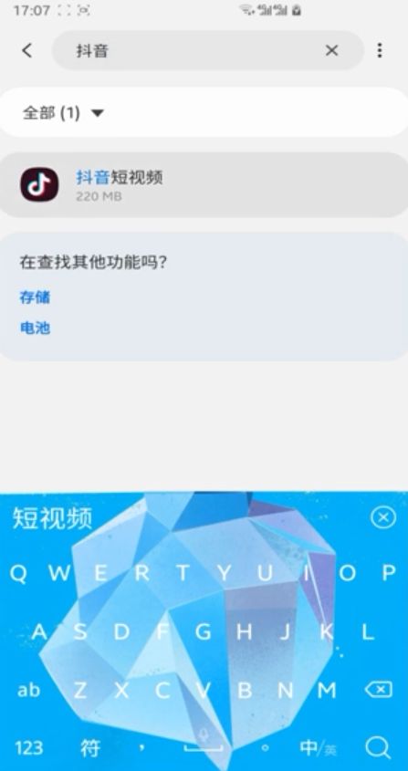 在搜索栏搜索抖音,然后点击“抖音短视频”。