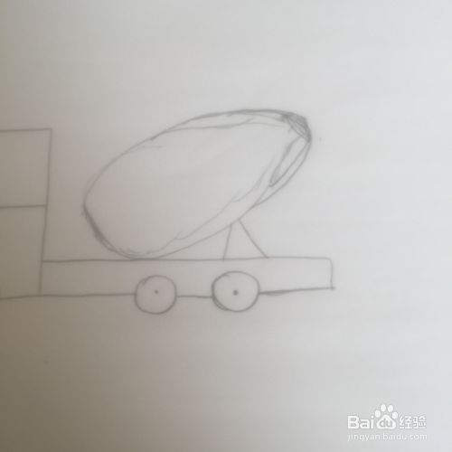 在底盘上面画一个大大的椭圆形,如图。在椭圆的右边画两个短线,作为支架。