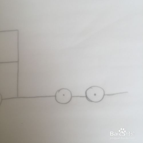 在直线上画上两个轮胎,如图。轮胎中间都画一个黑点。