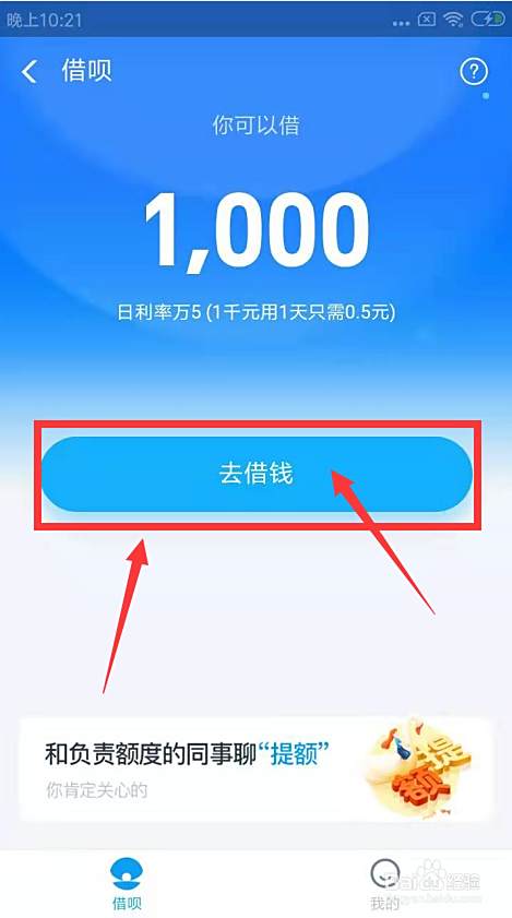 仔细观察界面,点击下方的蓝色去借钱图标。
