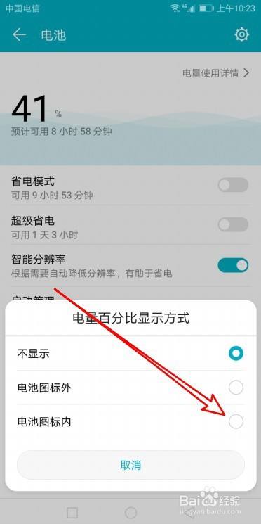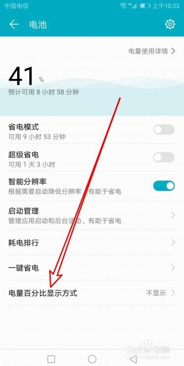 然后在打开的电池页面找到并点击电量百分比显示方式的设置项。