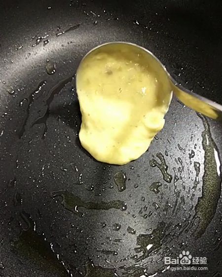 平底锅刷上一层油,倒入搅拌好的面糊;