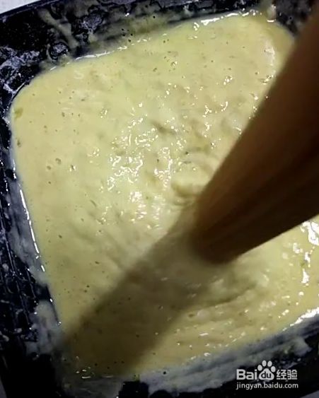 放入碗中,加入1勺面粉,2g泡打粉,1个鸡蛋;