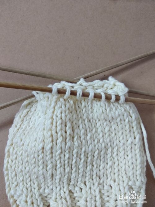 起好针后开始编织两针下针两针上针,把线圈分配在3根棒针上圈织帽边。