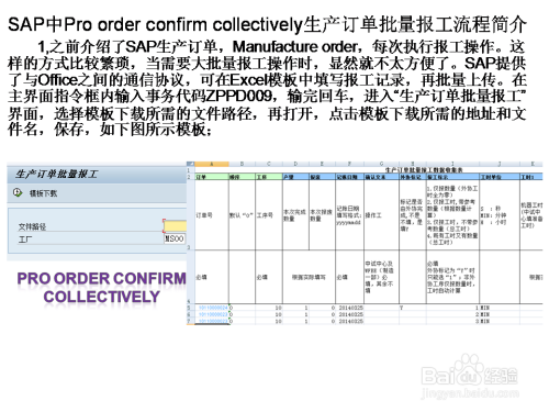 之前介绍了SAP生产订单,Manufacture order,每次执行报工操作。这样的方式比较繁琐,当需要大批量报工操作时,显然就不太方便了。SAP提供了与Office之间的通信协议,可在Excel模板中填写报工记录,再批量上传。
