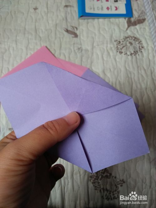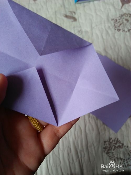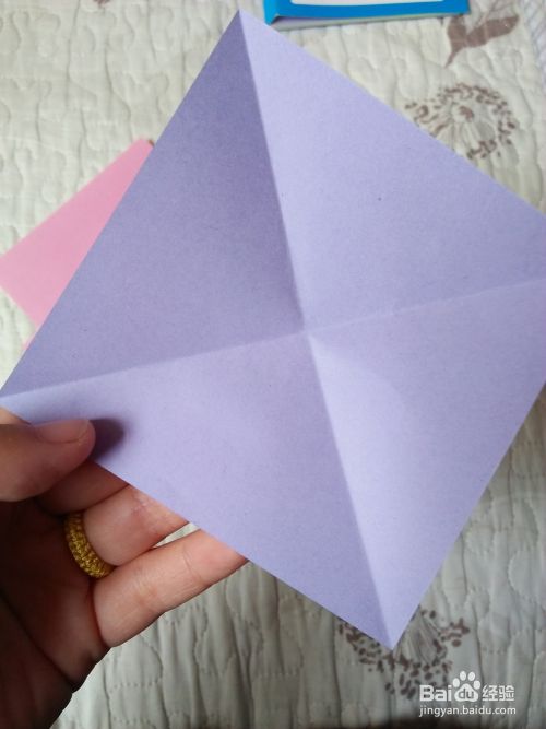 先把彩纸对角线对折,打开然后把两个角向交点对折。