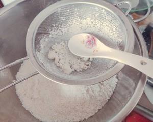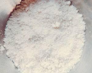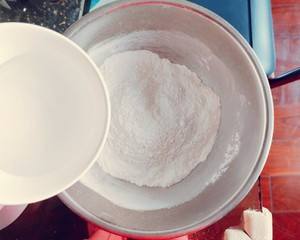 粘米粉、糯米粉和细砂糖倒入碗中混匀,随后少量多次倒入清水,并用筷子不停搅拌