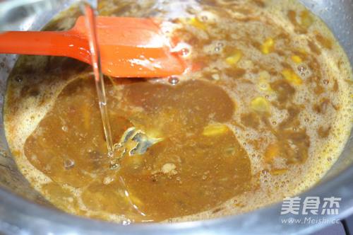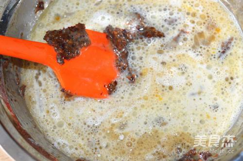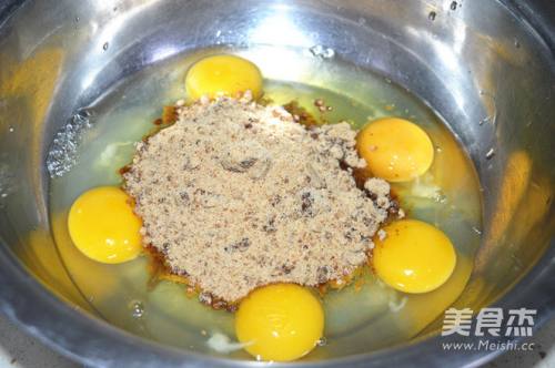 4将5个鸡蛋打入不锈钢盆中,加入红糖搅拌均匀;