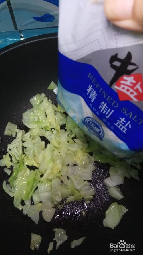 将馒头切成大块,放入锅中,和包菜一起翻炒。