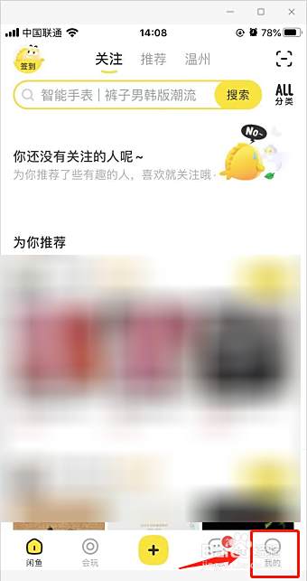 进入闲鱼APP后,切换至闲鱼【我的】界面。