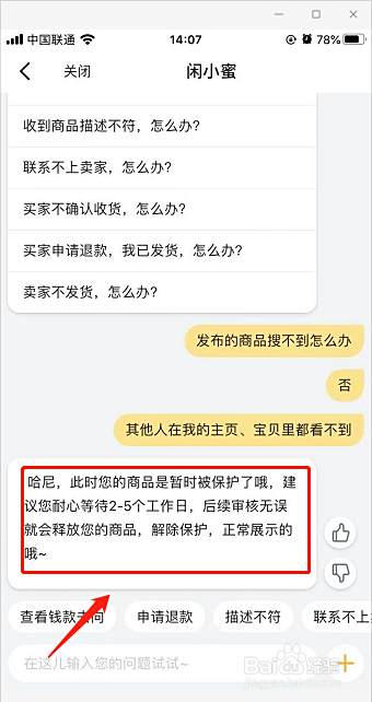 输入发布的商品搜不到怎么办问题,根据提示进行选择状况。