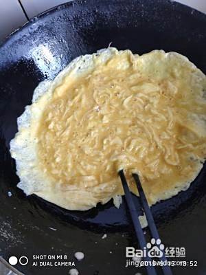 鸡蛋炒熟,尽量把鸡蛋炒成碎碎的。