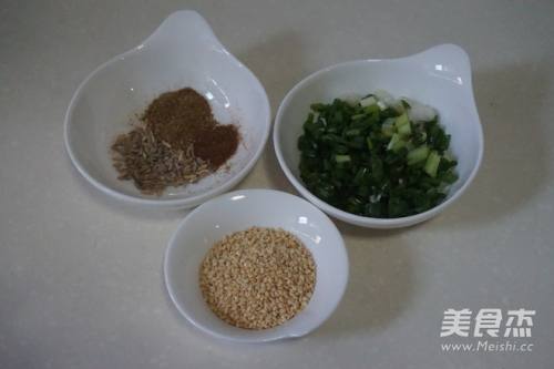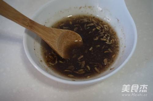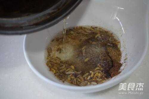 4香料碗中加入食盐,然后把烧至冒青烟的热油倒入