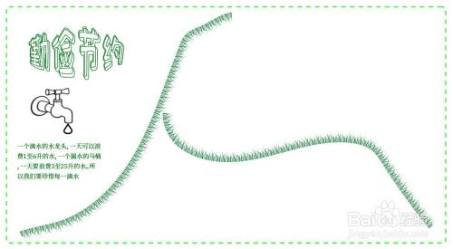 画上一个滴水的水龙头图案,写上滴水容易造成浪费的一些数值。