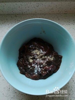 猪肝切好,放盐和白胡椒,对了!还有料酒!