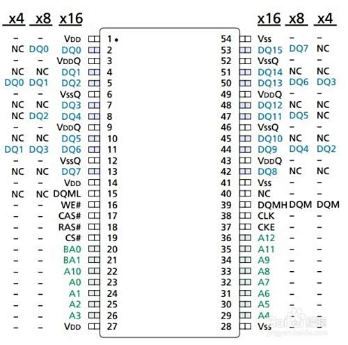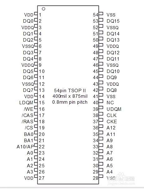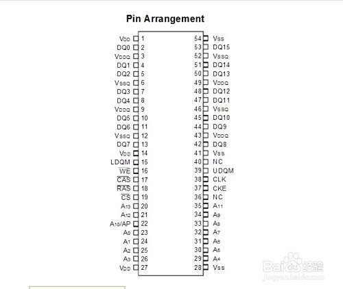 首先是查询内存资料,引脚图如下,该芯片位16M,HG255是两颗,也就是32M