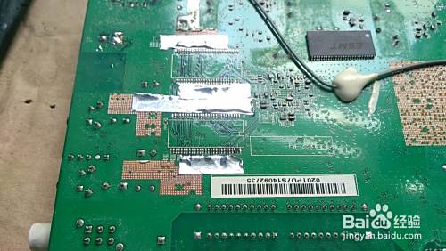 由于刚才拆芯片掉了一个焊盘,下面开始接线,