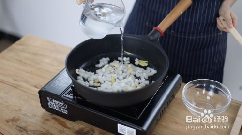 把萝卜炒2分钟左右。倒入一些水,用大火烧开。